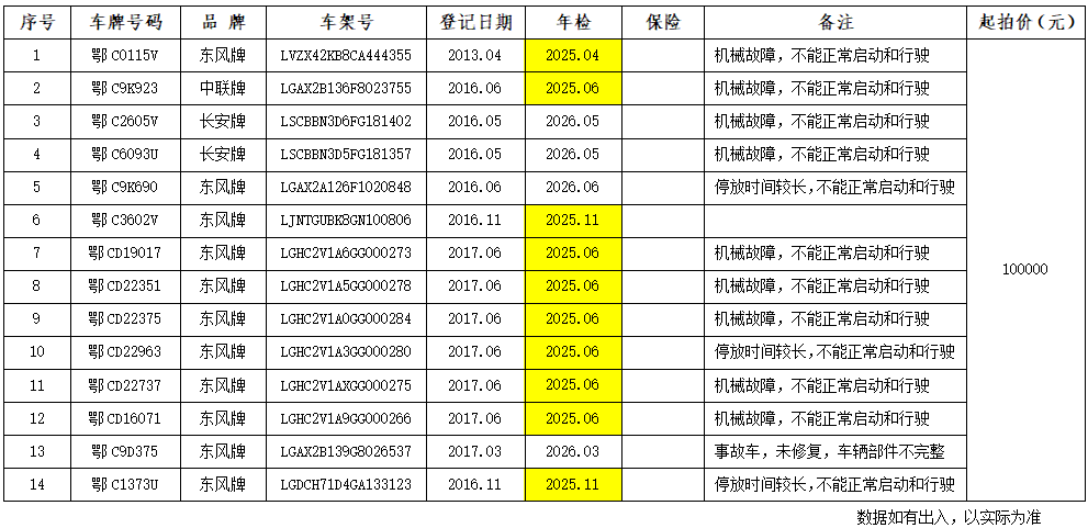 四、特別提醒:拍賣車輛不含車牌號碼,以現(xiàn)狀拍賣現(xiàn)狀交付。