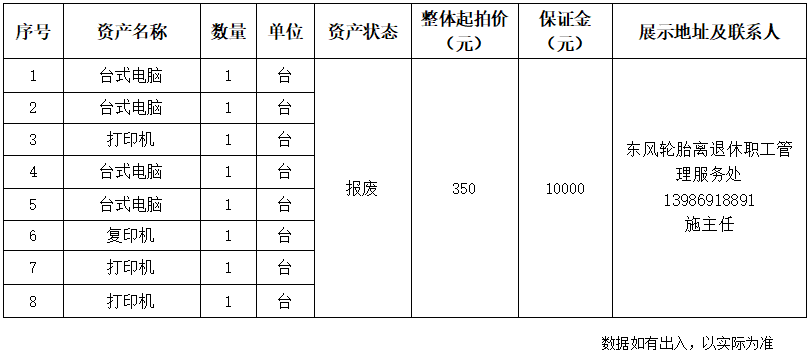 2.湖北省十堰市東風(fēng)輪胎離退休職工管理服務(wù)處報廢資產(chǎn):
