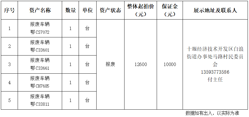 4.湖北省十堰經(jīng)濟技術(shù)開發(fā)區(qū)白浪街道辦事處馬路村民委員會報廢車輛: