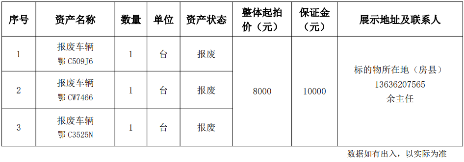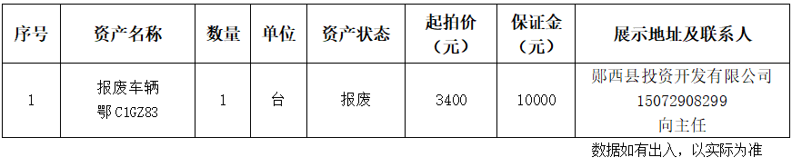 6.湖北省十堰市鄖西縣投資開發(fā)有限公司報廢車輛: