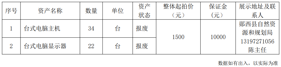1.湖北省十堰市鄖西縣自然資源和規(guī)劃局報廢資產(chǎn):