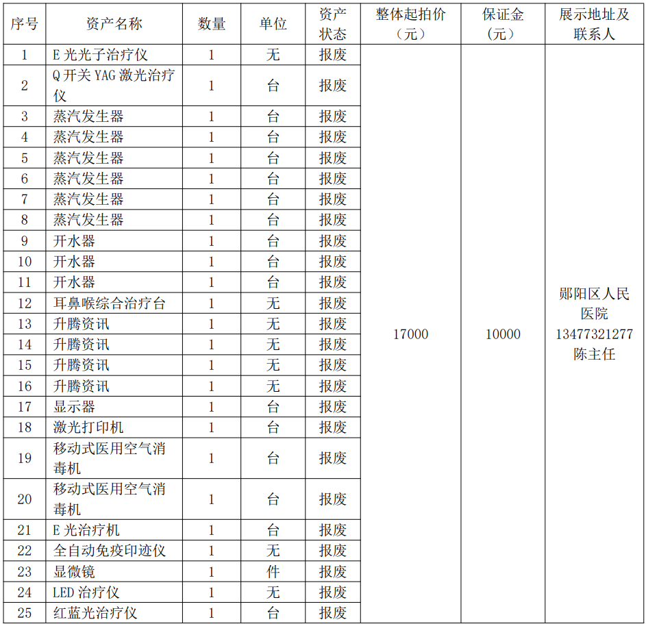 2.湖北省十堰市鄖陽區(qū)人民醫(yī)院報廢資產(chǎn):