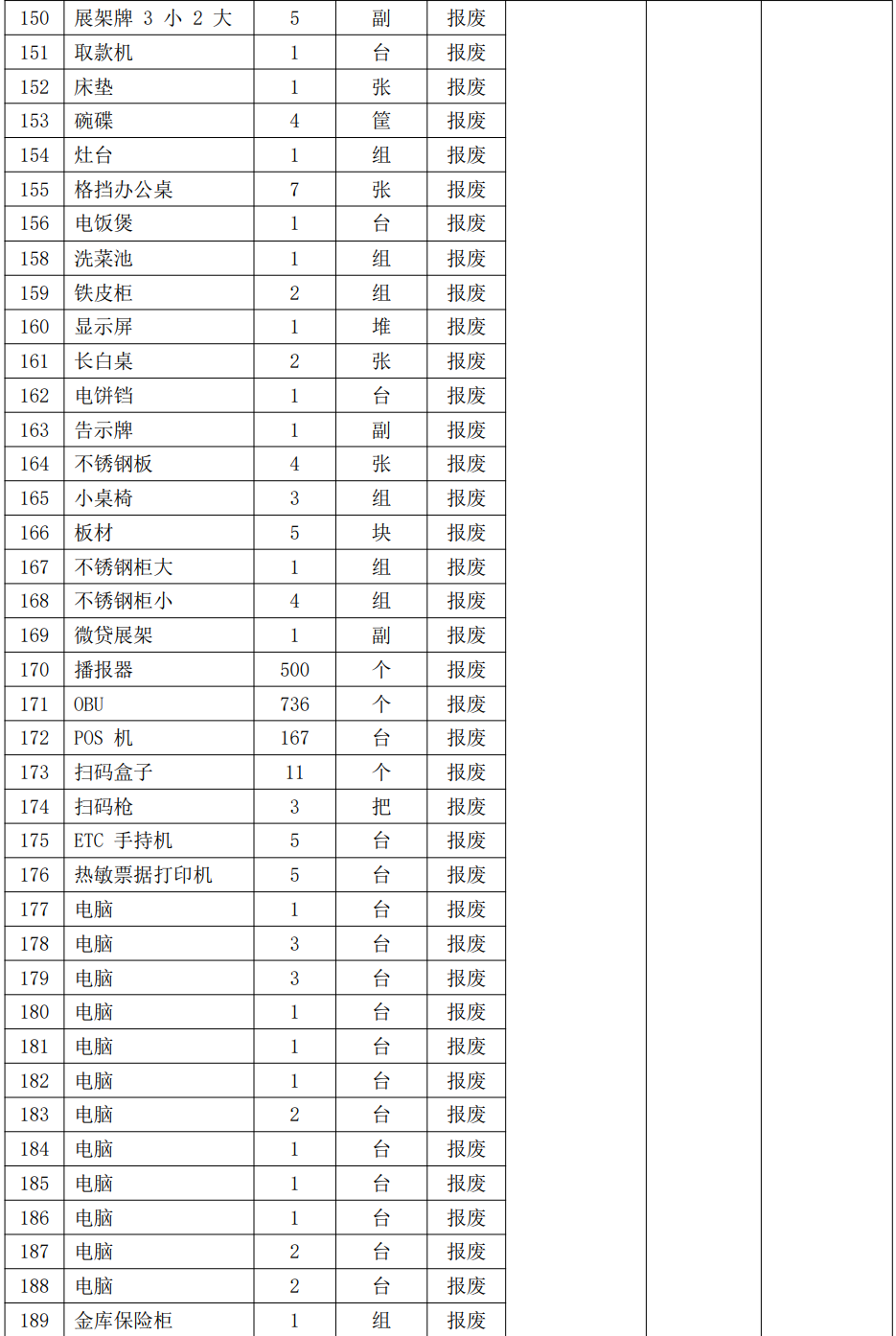 3.湖北鄖縣農(nóng)村商業(yè)銀行股份有限公司報廢資產(chǎn):