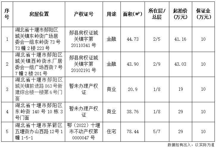 二、有意者可登錄中國拍賣行業(yè)協(xié)會網(wǎng)絡(luò)拍賣平臺或湖北鄖興拍賣有限公司網(wǎng)站(http://m.yimo521.com)查閱拍賣文件,并在2025年12月11日17時前將競買保證金繳至湖北鄖興拍賣有限公司賬戶(戶名:湖北鄖興拍賣有限公司,賬號:1810819719020089825,開戶銀行:中國工商銀行十堰柳林支行)后,憑有效身份證明和保證金繳納憑證辦理競買登記手續(xù)。未成交者保證金如數(shù)返還,不計利息。
